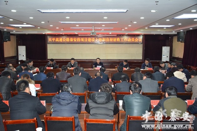 1月14日,秦安縣召開天平高速公路秦安段項目建設(shè)土地和房屋征收工作動員會議。縣委副書記裴貴軍,縣委常委、常務(wù)副縣長王彥軍,副縣長劉殿龍,天平高速公路天水段項目辦副主任尚高峰,天平高速公路秦安段工程項目建設(shè)征地拆遷領(lǐng)導(dǎo)小組成員單位及縣交通局、國土局、住建局、林業(yè)局、果業(yè)局所抽調(diào)工作人員共50余人參加會議。會議由縣委常委、常務(wù)副縣長王彥軍主持。