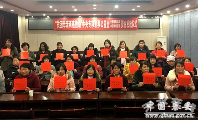 在“三八”婦女節(jié)即將來(lái)臨之際,2月24日上午,秦安縣舉行“貧困母親兩癌救助專項(xiàng)基金”救助金發(fā)放儀式,為來(lái)自全縣各鄉(xiāng)鎮(zhèn)的33名建檔立卡“兩癌”貧困婦女每人發(fā)放救助金1萬(wàn)元,共計(jì)33萬(wàn)元。縣委副書記裴貴軍,縣人大常委會(huì)副主任楊尚武出席發(fā)放儀式,縣婦聯(lián)、縣婦幼保健院等部門負(fù)責(zé)人參加了發(fā)放儀式。