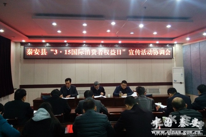 3月13日,秦安縣召開了以“網(wǎng)絡(luò)誠信 消費(fèi)無憂”為年主題的2017年“3·15國際消費(fèi)者權(quán)益日”宣傳活動(dòng)協(xié)調(diào)會(huì)?h委常委、統(tǒng)戰(zhàn)部部長扇忠瑜,縣政府副縣長丁遲成,以及縣委宣傳部、縣工商局、商務(wù)局、物價(jià)局、質(zhì)監(jiān)局、衛(wèi)計(jì)局、食藥監(jiān)局、農(nóng)業(yè)局、公安局等相關(guān)單位負(fù)責(zé)人參加了會(huì)議。