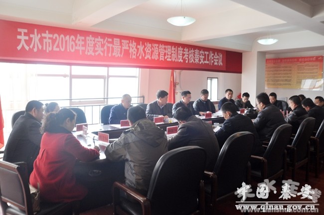 3月17日,市政府考核組來秦安考核2016年度實行最嚴(yán)格水資源管理制度工作?h政府副縣長劉殿龍及縣水務(wù)局、發(fā)改局、環(huán)保局等相關(guān)部門負(fù)責(zé)人參加了考核工作。