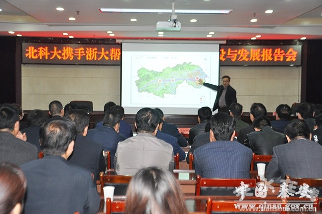 3月31日,北科大攜手浙大幫扶秦安城鄉(xiāng)規(guī)劃建設(shè)與發(fā)展報(bào)告會(huì)在行政辦公中心北三樓會(huì)議室舉行,浙江大學(xué)環(huán)境與資源學(xué)院副院長(zhǎng)王珂教授和浙江大學(xué)城鄉(xiāng)規(guī)劃設(shè)計(jì)研究院院長(zhǎng)楊建軍教授分別作了報(bào)告。