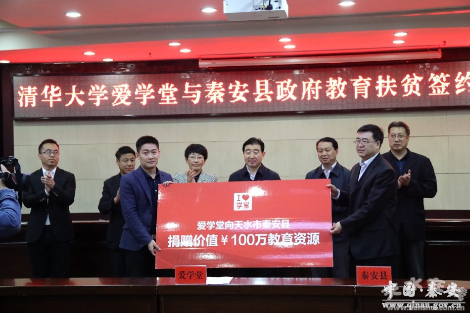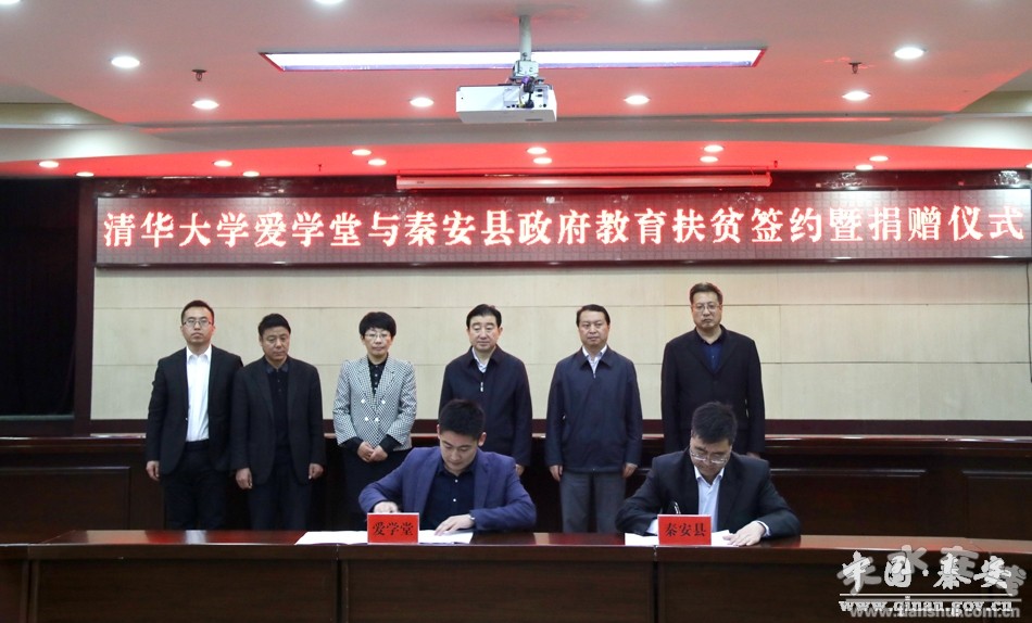 4月18日,清華大學(xué)愛學(xué)堂與秦安縣政府舉行教育扶貧簽約暨捐贈(zèng)儀式,清華大學(xué)愛學(xué)堂總裁助理高現(xiàn)波,市政府副市長霍衛(wèi)平,秦安縣委副書記、縣長程江芬,縣委副書記裴貴軍、縣人大常委會(huì)副主任張耀清、副縣長于劍鋒、劉殿龍,縣政協(xié)副主席路福太,以及縣委辦、政府辦、縣教體局班子成員、城區(qū)中小學(xué)主要負(fù)責(zé)人參加了簽約暨捐贈(zèng)儀式。儀式由副縣長劉殿龍主持。