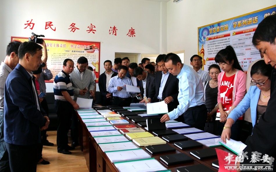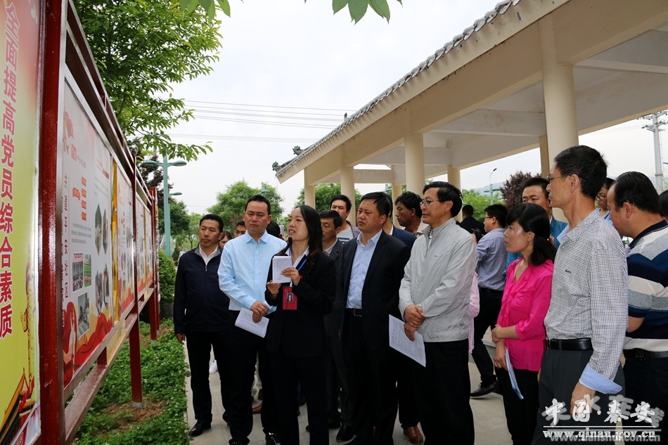 考察組先后深入縣委組織部、西川鎮(zhèn)、縣司法局、縣法院、興國鎮(zhèn)映南社區(qū)、行政審批中心、縣一小、福雨塑業(yè)、縣一中、劉坪鎮(zhèn)周灣村、縣醫(yī)院、興國鎮(zhèn)康坡村、王尹鎮(zhèn)機(jī)關(guān)、葉堡鎮(zhèn)牌樓村、安伏鎮(zhèn)楊寺村、蓮花鎮(zhèn)桑川村、隴城教育園區(qū)、隴城鎮(zhèn)西關(guān)村、縣國稅局等地,通過實地察看、查閱資料、座談交流、觀看演示等方式,重點就秦安縣“黨建+”、黨內(nèi)激勵關(guān)懷幫扶機(jī)制、村黨組織書記專職化、鄉(xiāng)鎮(zhèn)機(jī)關(guān)黨建、黨員示范崗、非公企業(yè)黨建、基層黨建助推產(chǎn)業(yè)發(fā)展、農(nóng)村電商、基層黨建助推教育扶貧、村級綜合服務(wù)中心建設(shè)、黨員創(chuàng)業(yè)、黨員固定活動日制度和基層服務(wù)型黨組織信息化平臺等基層黨建創(chuàng)新工作的先進(jìn)經(jīng)驗和做法進(jìn)行了詳細(xì)了解。