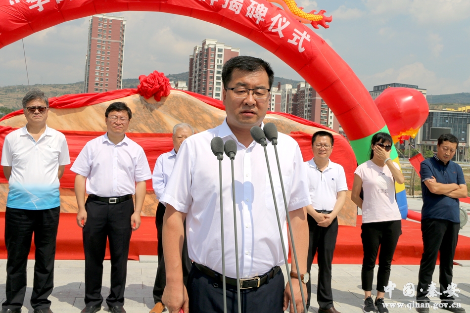 王正茂在講話中說(shuō),今天我們?cè)谶@里舉行“李白祖居地”石碑揭碑儀式,我代表市委、市政府向這一文化盛舉表示熱烈的祝賀。李白祖籍隴西成紀(jì)是毋庸置疑的,所有的古籍史料、李白自己的詩(shī)文以及中國(guó)歷史博物館的展品,都對(duì)此做了充分的說(shuō)明。李白的祖居地在甘肅天水秦安,這是我們今天向全國(guó)乃至全世界發(fā)出的聲音。秦安縣委、縣政府立此碑意義重大,這是秦安60余萬(wàn)人民文化自覺(jué)的表現(xiàn)。秦安歷史文化名人眾多,對(duì)中華民族文化的貢獻(xiàn)李白更是功不可沒(méi)。此次借助“李杜詩(shī)歌節(jié)”在天水的成功舉辦,豎立“李白祖居地”的石碑,是秦安縣委、縣政府和“中國(guó)天水·李杜詩(shī)歌節(jié)”組委會(huì)的共襄盛舉。這也是秦安作為中華民族發(fā)祥地之一,發(fā)展成為文化大縣、文化強(qiáng)縣的一種自信。秦安宣傳安維峻等秦安名人和“貨郎擔(dān)”精神,也在不斷地加大對(duì)李白祖脈文化的宣傳。如今,要建設(shè)文化強(qiáng)縣,就要著力打造這一文化品牌,不辜負(fù)李白祖居地的名號(hào)。