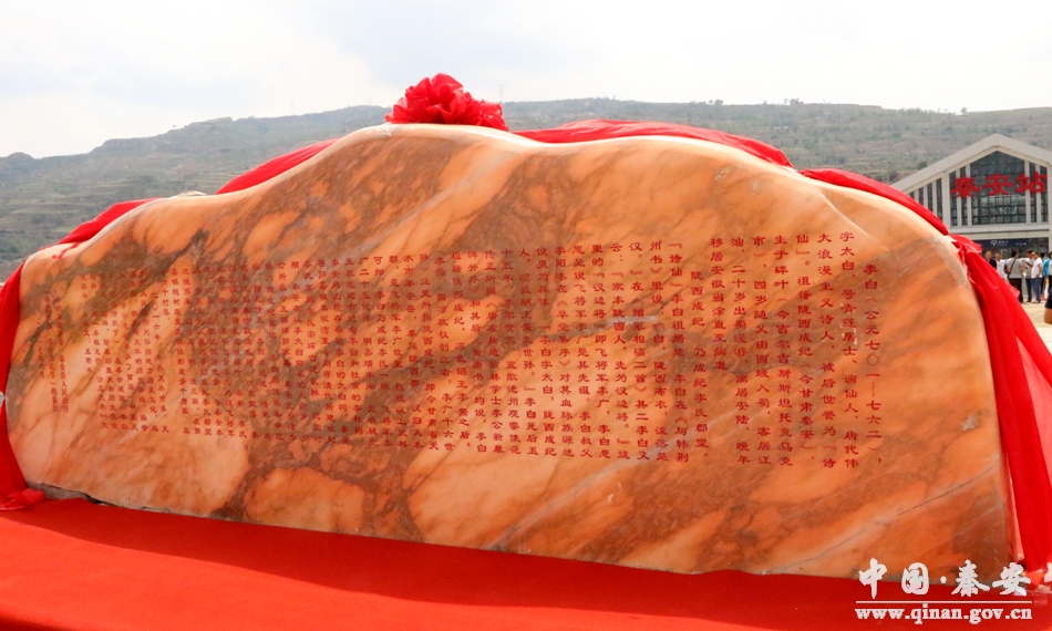 6月29日,在寶蘭客專即將正式開(kāi)通運(yùn)營(yíng)之際,“李白祖居地”石碑揭碑儀式在秦安站站前廣場(chǎng)舉行。