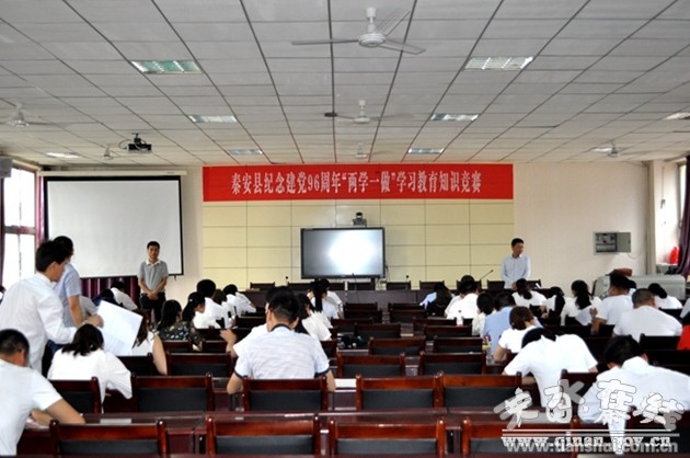 為慶祝中國共產(chǎn)黨成立96周年,深入推進(jìn)“兩學(xué)一做”學(xué)習(xí)教育常態(tài)化制度化,進(jìn)一步激勵全縣廣大黨員干部堅(jiān)定理想信念,增強(qiáng)宗旨意識,強(qiáng)化黨性修養(yǎng),積極投身建設(shè)美麗秦安的偉大實(shí)踐。七一前夕,秦安縣舉辦了紀(jì)念建黨96周年“兩學(xué)一做”學(xué)習(xí)教育知識競賽,競賽分兩個階段進(jìn)行,黨(工)委組織開展的初賽和縣上集中組織開展的總決賽。6月30日,全縣慶祝建黨96周年“兩學(xué)一做”學(xué)習(xí)教育知識競賽決賽在縣職校舉行,來自全縣17個鎮(zhèn)黨委和20個縣直黨(工)委的76名選手參加了決賽。