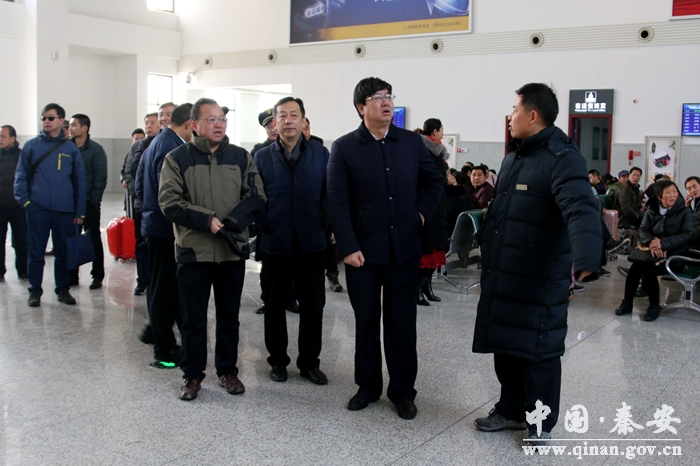 1月25日,蘭州鐵路局客運(yùn)處處長楊忠民一行來到秦安,就寶蘭高鐵秦安站春運(yùn)保障工作進(jìn)行調(diào)研。甘青公司寶蘭客專天水指揮部副指揮長楊總峰,天水火車站站長鞏增明,秦安縣委書記王東紅,縣委常委、常務(wù)副縣長王彥軍一同調(diào)研。