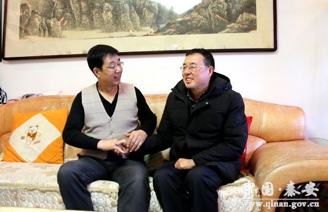 在離退休老干部高霆鈞、張德友家中,郭海軍緊緊握住他們的手,詳細(xì)詢問(wèn)他們的身體健康狀況和家庭生活情況,認(rèn)真聽(tīng)取老干部對(duì)全縣各項(xiàng)工作的意見(jiàn)和建議。郭海軍說(shuō),老干部是國(guó)家和社會(huì)的財(cái)富,希望各位老干部要一如既往地關(guān)心支持秦安經(jīng)濟(jì)社會(huì)發(fā)展的各項(xiàng)工作和縣人大工作,在保持身心健康、安度晚年的前提下,充分發(fā)揮經(jīng)驗(yàn)、智慧優(yōu)勢(shì),積極建言獻(xiàn)策,為全縣經(jīng)濟(jì)社會(huì)又好又快發(fā)展再做貢獻(xiàn)。