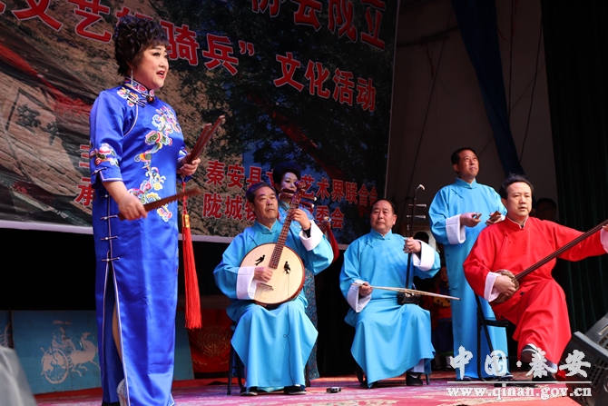 “紅色文藝輕騎兵”文化惠民活動(dòng)是縣文聯(lián)為深入貫徹黨的十九大精神和習(xí)近平總書記關(guān)于烏蘭牧騎“紅色文藝輕騎兵”重要指示精神,大力弘揚(yáng)優(yōu)秀傳統(tǒng)文化,傳承隴城鎮(zhèn)常平堡獨(dú)特民俗文化的一次文藝惠民活動(dòng)。當(dāng)日,縣文聯(lián)組織“紅色文藝輕騎兵”走進(jìn)媧皇故里,相約美麗的常營(yíng)村,舉辦文化惠民文藝演出和書畫筆會(huì)活動(dòng)。秦安縣常平堡文化藝術(shù)協(xié)會(huì)征集常營(yíng)村和清水河地區(qū)書畫愛好者的書畫作品進(jìn)行展覽,共展出作品60余幅!凹t色文藝輕騎兵”們盡情表演、傾心創(chuàng)作,歌聲嘹亮,琴聲悠揚(yáng),揮毫弄墨,抒寫丹青。精彩的文藝節(jié)目贏得了一陣陣熱烈的掌聲;精美的書畫贏得了一句句推心置腹的贊揚(yáng)。秦安小曲、歌曲、舞蹈、秦腔、樂器演奏等節(jié)目與常營(yíng)村本土文藝節(jié)目隴城常營(yíng)小曲、武術(shù)、秦腔牌子曲的互動(dòng)展演,一次次把活動(dòng)推上了高潮,為當(dāng)?shù)厝罕姭I(xiàn)上了一道精美的文化大餐,贏得了當(dāng)?shù)厝罕姷囊恢沦澴u(yù)和好評(píng)。