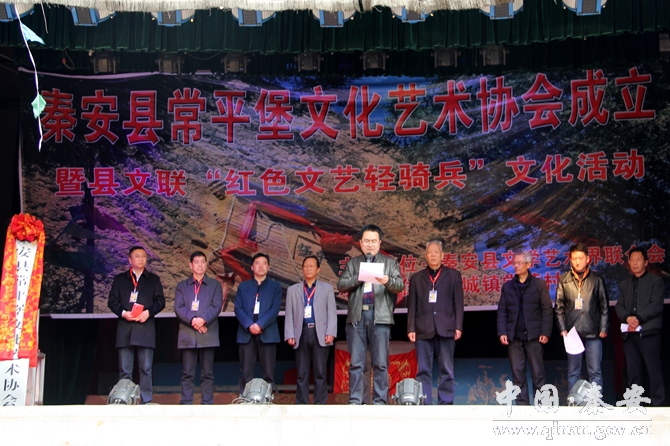 3月18日(農(nóng)歷二月初二),由秦安縣文學(xué)藝術(shù)界聯(lián)合會(huì)組織的“紅色文藝輕騎兵”文化惠民活動(dòng)走進(jìn)隴城鎮(zhèn)常營(yíng)村,為當(dāng)?shù)厝罕娝腿チ司实奈乃囇莩,并開展了書畫筆會(huì)活動(dòng)。當(dāng)天,秦安縣常平堡文化藝術(shù)協(xié)會(huì)揭牌成立。
