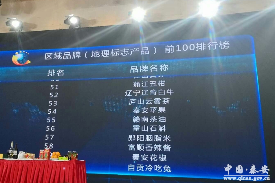 在中國(guó)區(qū)域品牌(地理標(biāo)志產(chǎn)品)百?gòu)?qiáng)榜中,秦安蘋果、秦安花椒分別位列第54位和59位。煙臺(tái)蘋果、靈果蘋果、沂源蘋果、秦安蘋果依次排名上榜蘋果品牌的一、二、三、四位,秦安花椒是全國(guó)唯一上榜的花椒品牌。甘肅省上榜品牌6個(gè),秦安蘋果、秦安花椒分別位列全省品牌第一位和第二位。