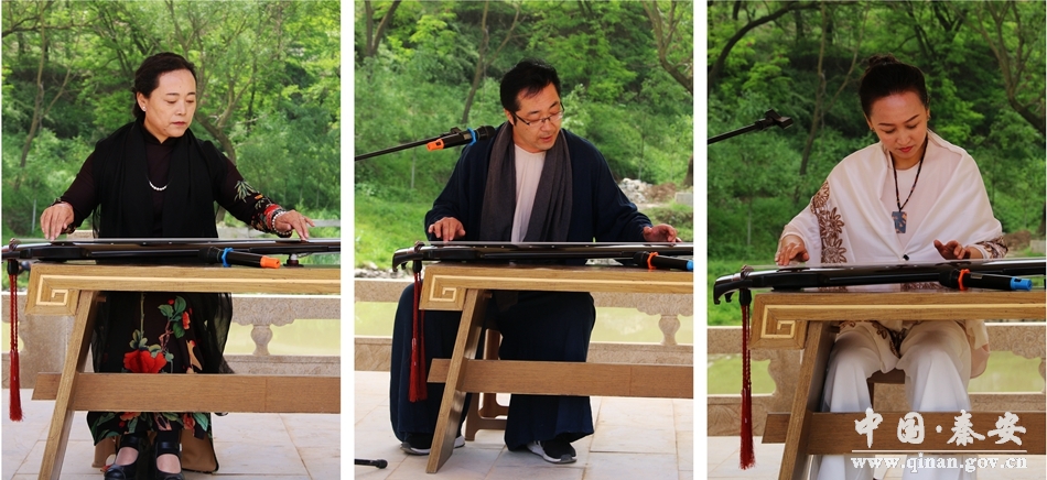 隨著現場主持人的引導,大家閉目冥思,在音樂的指引下,聽眾們仿佛尋找到了一方心靈得以安靜、放松、駐足的港灣。茶藝展示、古琴獨奏、詩歌朗誦等眾多的藝術表演讓久居山莊的村民們眼前一亮。三個稚氣未脫的小朋友的彈奏的《滄海一聲笑》,彈奏流暢,琴聲悠揚。古琴表演藝術家胡寶琴的彈唱,聲音時而高亢激昂,時而婉轉悠揚,余音裊裊,不絕如縷。讓觀眾的思緒在音樂的彈奏中云起雪飛。