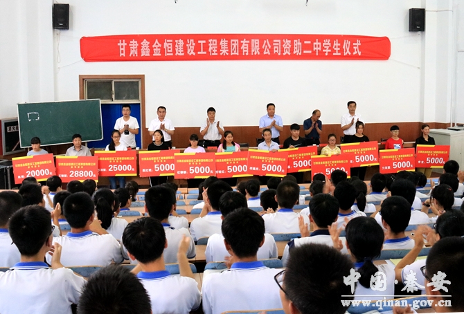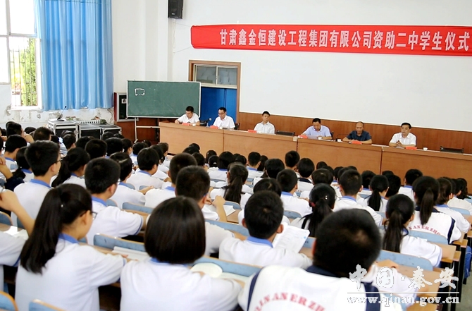 8月31日,秦安縣第二中學(xué)舉行2018屆貧困大學(xué)生資助金發(fā)放儀式?h委常委、宣傳部長徐東明,縣人大常委會副主任張耀清,甘肅鑫金恒建設(shè)工程集團(tuán)公司相關(guān)負(fù)責(zé)人,縣二中部分教師、受助學(xué)生及家長參加了捐贈儀式。