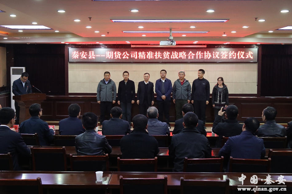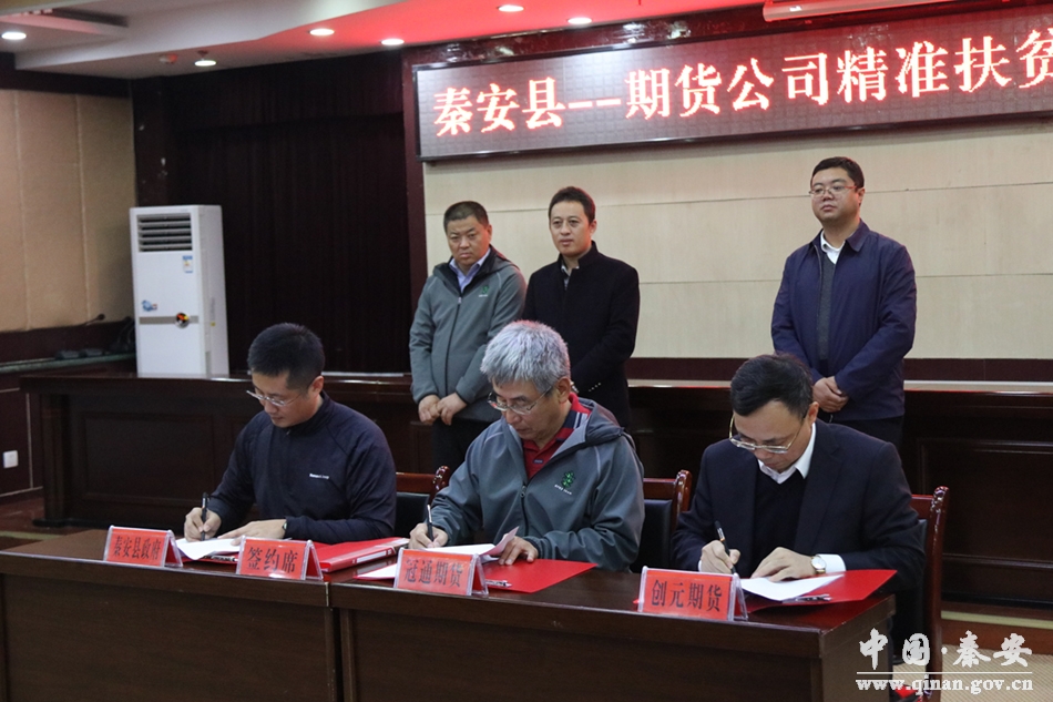 10月23日,在秦安縣行政中心舉行秦安縣——期貨公司精準(zhǔn)扶貧戰(zhàn)略合作協(xié)議簽約儀式,秦安縣委常委、副縣長(zhǎng)紀(jì)彤國(guó)代表秦安縣人民政府與冠通期貨公司、創(chuàng)元期貨公司簽訂了精準(zhǔn)扶貧戰(zhàn)略合作協(xié)議。簽約儀式由副縣長(zhǎng)文斌主持。