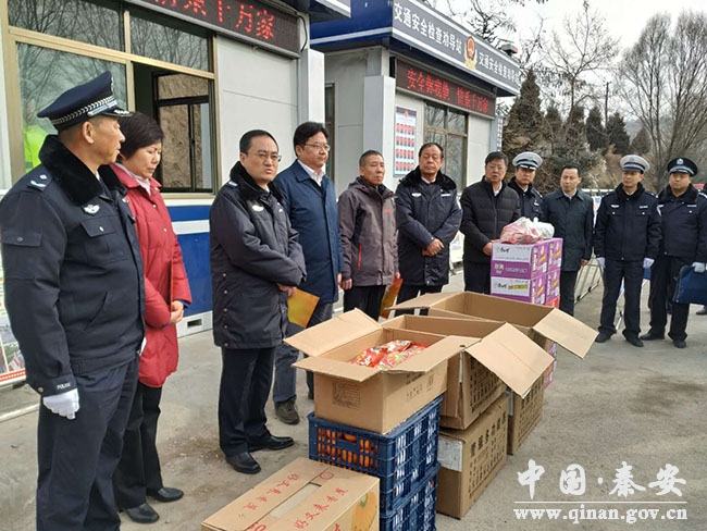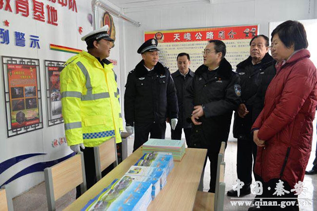 12月19日,副省長(zhǎng)、省公安廳黨委書記、廳長(zhǎng)余建,省婦聯(lián)主席周麗寧,團(tuán)省委副書記董安寧和省總工會(huì)、省公安廳有關(guān)部門負(fù)責(zé)人深入秦安縣督導(dǎo)檢查冬季預(yù)防道路交通事故“大戰(zhàn)100天”專項(xiàng)行動(dòng),并看望慰問了王鋪梁長(zhǎng)下坡路段執(zhí)勤點(diǎn)執(zhí)勤交警輔警,為他們送去了御寒衣物、食品等生活用品。