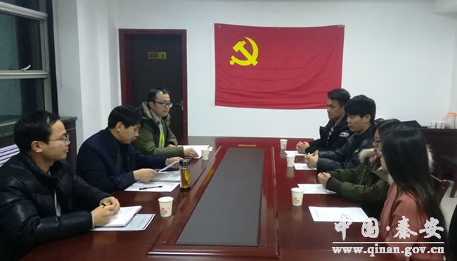 沈崴宣讀了北科大黨委組織部《關(guān)于同意成立北京科技大學(xué)秦安扶貧工作功能型黨支部的批復(fù)》。會議強調(diào),黨支部全體黨員要完成“三個轉(zhuǎn)變”,即從高校教師向扶貧干部的轉(zhuǎn)變,從城市生活向鄉(xiāng)村生活的轉(zhuǎn)變,從服務(wù)師生向服務(wù)群眾的轉(zhuǎn)變;做到“三個結(jié)合”,即把黨建引領(lǐng)與脫貧攻堅結(jié)合起來,把學(xué)校要求和當(dāng)?shù)毓ぷ鹘Y(jié)合起來,把理論學(xué)習(xí)與工作實踐結(jié)合起來;實現(xiàn)“三個提升”,即促進扶貧干部黨性修養(yǎng)的提升,促進扶貧干部理論水平的提升,促進扶貧干部扶貧工作能力的提升。會議要求,黨支部全體黨員要認真學(xué)習(xí)扶貧政策,提高理論素養(yǎng);扎實開展黨建活動,提升工作水平;牢固樹立服務(wù)意識,助力脫貧攻堅;全面加強總結(jié)宣傳,提高群眾影響,為秦安早日脫貧貢獻力量。
