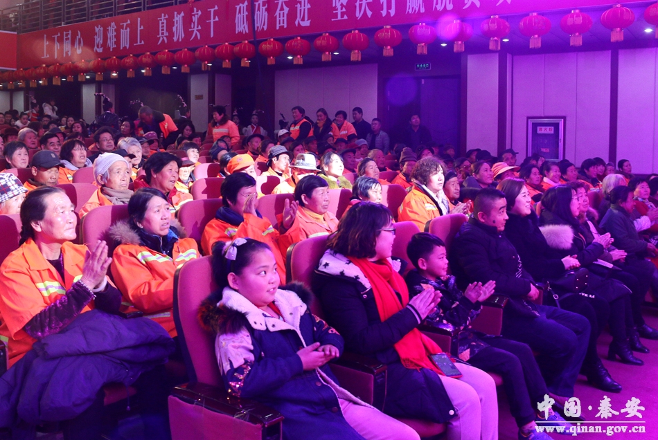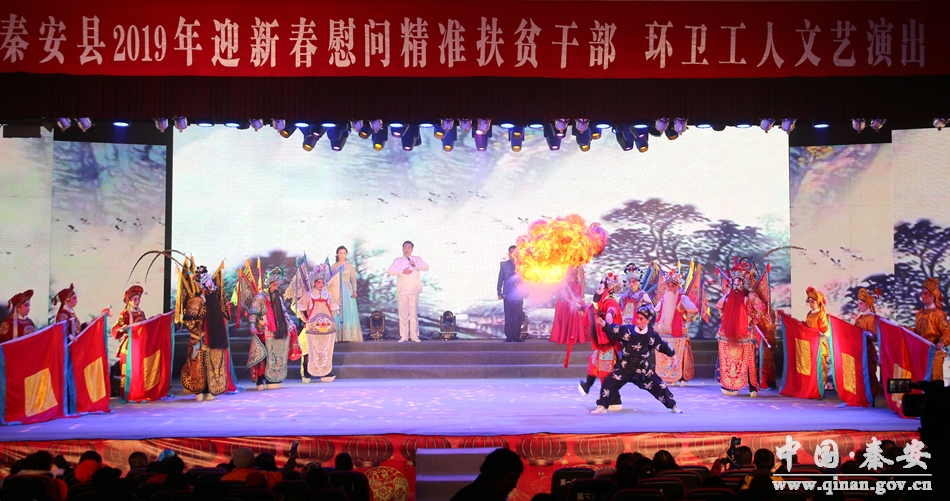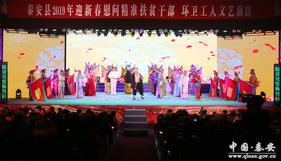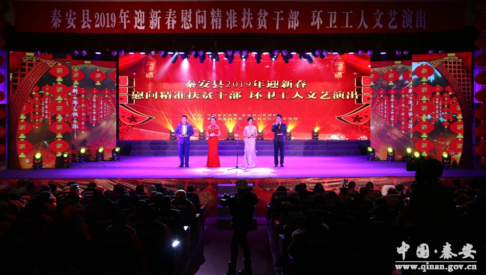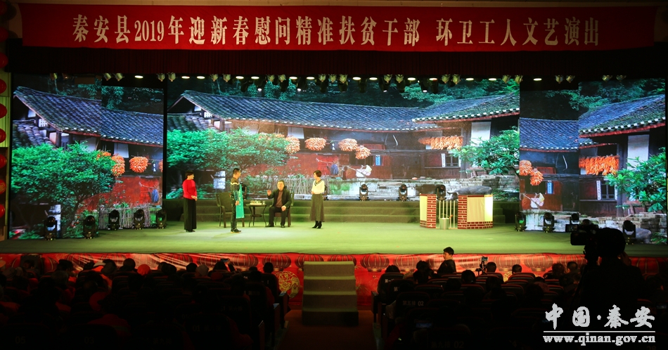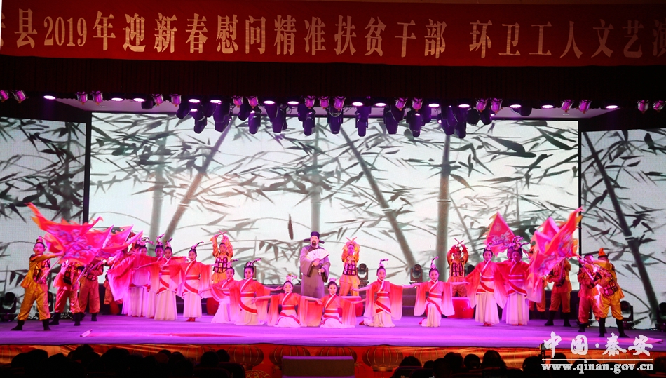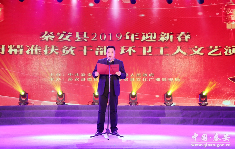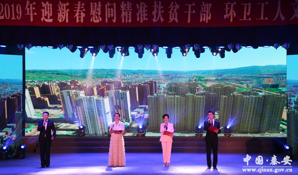 1月27日,由中共秦安縣委、縣政府主辦,縣委宣傳部、縣文廣局承辦的2019年迎新春慰問扶貧干部、環(huán)衛(wèi)工人文藝匯演在縣行政中心二樓禮堂舉行?h領(lǐng)導(dǎo)郭海軍、徐東明、文斌、張榮生,農(nóng)業(yè)、宣傳、教育、文化、城建等部門單位負(fù)責(zé)人,駐村幫扶工作隊(duì)隊(duì)長,環(huán)衛(wèi)工人代表,各鎮(zhèn)、縣直部門、單位干部職工代表,駐秦單位代表等600余人一同觀看了文藝演出。演出伊始,縣委常委、宣傳部部長徐東明作了致辭。