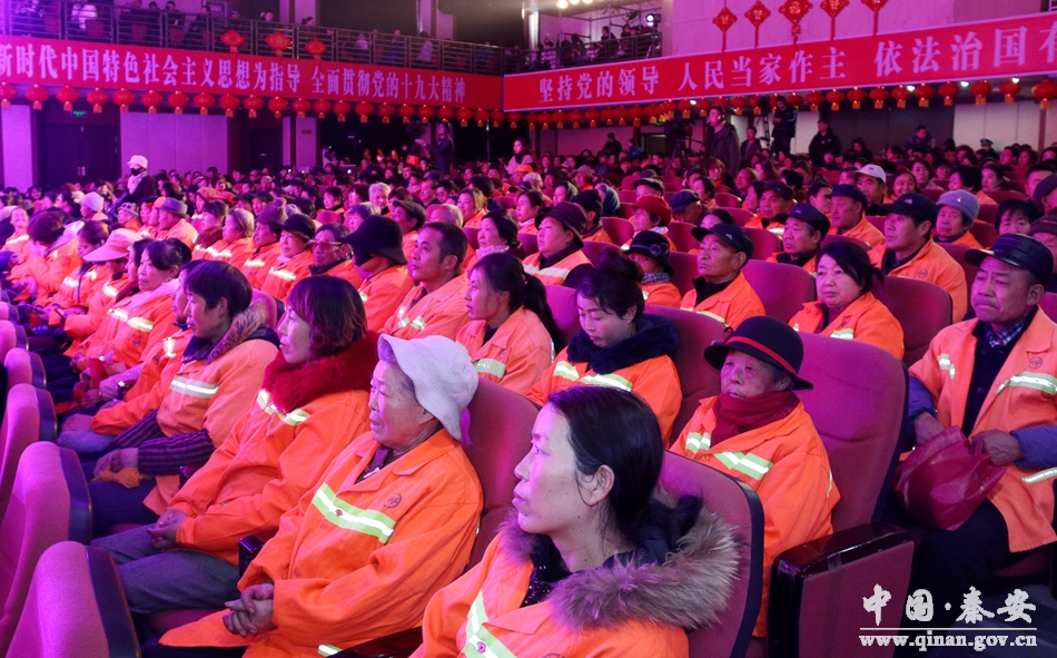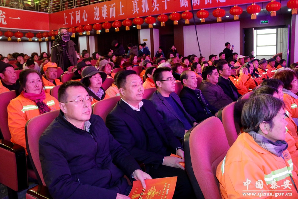 徐東明在致辭中首先代表縣委、縣人大、縣政府、縣政協(xié)向奮戰(zhàn)在一線的廣大精準(zhǔn)扶貧工作隊(duì)員、鄉(xiāng)鎮(zhèn)干部、環(huán)衛(wèi)職工致以親切的慰問,向關(guān)心支持全縣各項(xiàng)事業(yè)發(fā)展的駐秦單位、廣大干部職工和社會(huì)各界人士表示真誠的感謝。他說,剛剛過去的一年,縣委、縣政府團(tuán)結(jié)帶領(lǐng)全縣廣大干部群眾,苦干實(shí)干,不懈奮斗,城鄉(xiāng)面貌發(fā)生明顯改變,脫貧攻堅(jiān)取得顯著成效,全縣經(jīng)濟(jì)發(fā)展和社會(huì)建設(shè)取得可喜成績。這些成績的取得離不開廣大一線工作者的不懈努力,特別是廣大環(huán)衛(wèi)工作者的無私奉獻(xiàn)和任勞任怨,以及廣大的駐村幫扶工作隊(duì)員、鄉(xiāng)鎮(zhèn)干部的凝心聚力與攻堅(jiān)克難。希望全縣廣大干部職工能夠繼續(xù)保持昂揚(yáng)的精神狀態(tài),繼續(xù)發(fā)揚(yáng)優(yōu)良作風(fēng),開拓創(chuàng)新、銳意進(jìn)取,在各自的工作崗位上再立新功、再創(chuàng)輝煌,為如期全縣整體脫貧摘帽、全面建成小康社會(huì)作出新的更大的貢獻(xiàn),以優(yōu)異的成績向新中國70華誕獻(xiàn)禮。