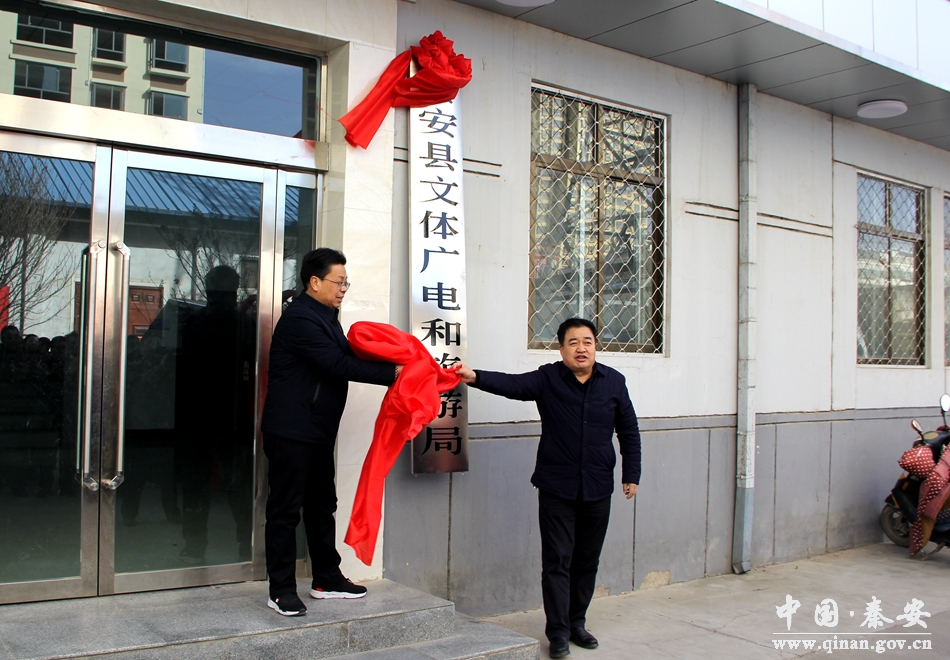 根據(jù)《秦安縣機(jī)構(gòu)改革方案》要求,2月2日,秦安縣文體廣電和旅游局正式掛牌成立?h委常委、政法委書記楊喜春和縣文體廣電和旅游局黨組書記王建祥為新成立的秦安縣文體廣電和旅游局揭牌。