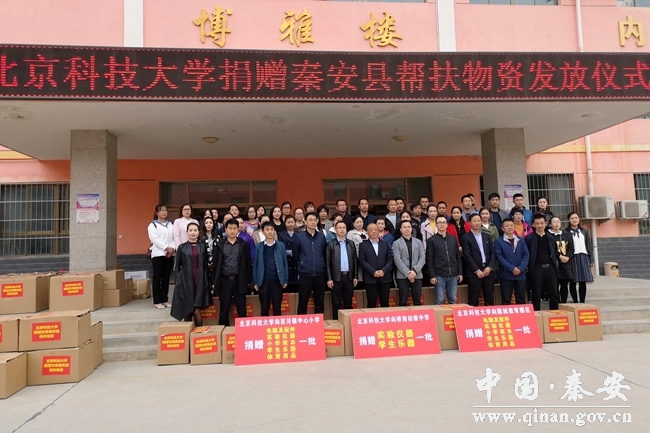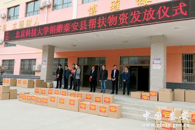 4月13日上午,北京科技大學捐贈秦安縣幫扶物資發(fā)放儀式在西川中心小學舉行。北京科技大學扶貧辦副主任蔣靈斌,縣教育局負責同志,橋南中學、隴城鎮(zhèn)教育園區(qū)、西川學區(qū)等受助單位負責人、教師代表和西川中心小學全體教師等60余人參加了捐贈儀式。