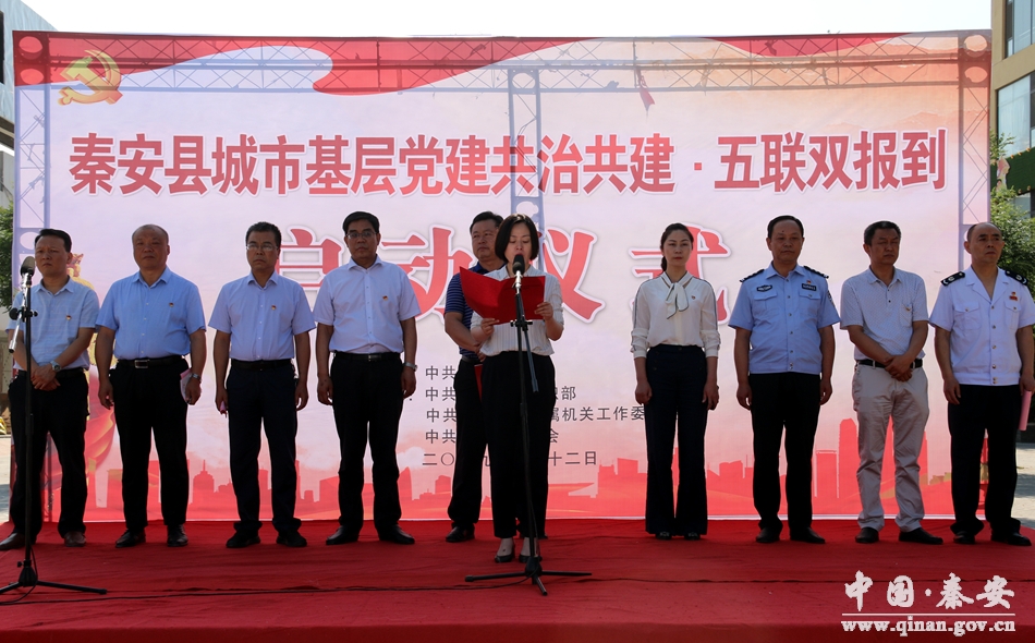 7月12日,秦安縣城市基層黨建共治共建·五聯(lián)雙報(bào)到啟動儀式在興國鎮(zhèn)大城社區(qū)舉行。
