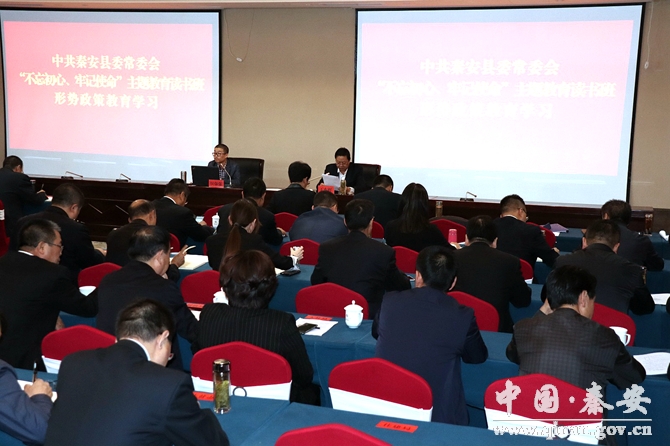9月20日,秦安縣委常委會“不忘初心、牢記使命”主題教育讀書班進(jìn)行形勢政策教育,邀請?zhí)焖形h校黨史與黨建教研室侯強(qiáng)強(qiáng)講師作了題為《學(xué)習(xí)貫徹新時代黨的建設(shè)總要求,努力建設(shè)世界上最強(qiáng)大的政黨》”的形勢政策教育專題輔導(dǎo)。