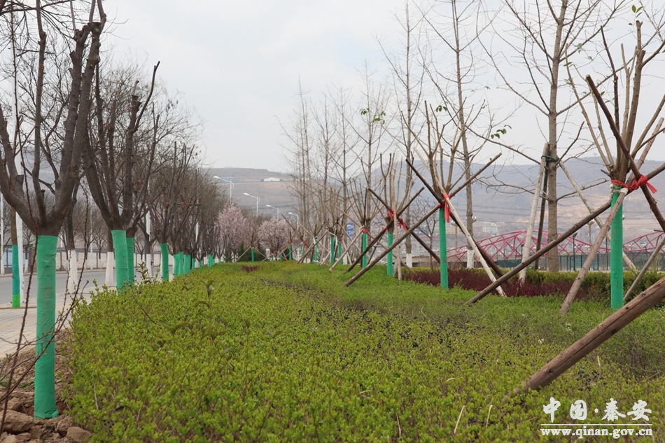 在東濱河路北延段,花卉苗木郁郁蔥蔥,微風(fēng)拂面夾帶著植被的清香,讓人心曠神怡。作為續(xù)建項(xiàng)目,自2月20日開始,秦安縣住建局綠化站積極組織人員著手城區(qū)綠化工作。截至目前,栽植各種喬木1224株,球類及各種花灌木789株,鋪地柏、金葉榆、南天竹、紅葉石楠5710平方米,已完成全部綠化任務(wù)的90%,預(yù)計(jì)4月中旬完成全部綠化任務(wù)。