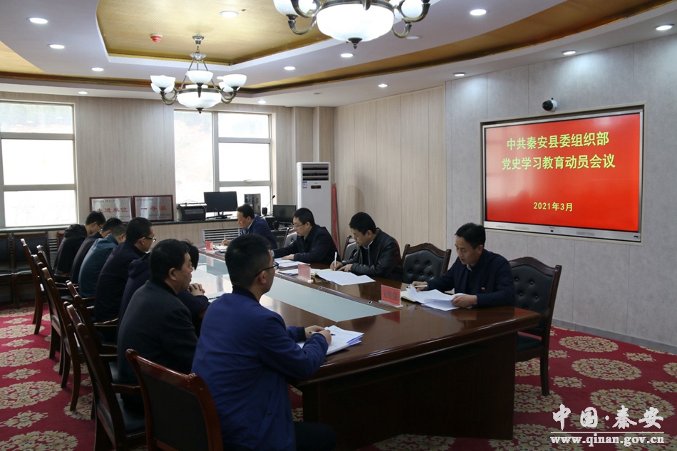 會(huì)議傳達(dá)學(xué)習(xí)了習(xí)近平總書記在黨史學(xué)習(xí)教育動(dòng)員大會(huì)上的重要講話精神和省、市、縣黨史學(xué)習(xí)教育動(dòng)員大會(huì)精神;宣讀了《中共秦安縣委組織部關(guān)于開展黨史學(xué)習(xí)教育的實(shí)施方案》;對(duì)縣委組織部開展黨史學(xué)習(xí)教育進(jìn)行安排部署。