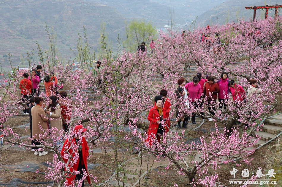 桃鄉(xiāng)花海中,鍋友們紛紛拍照留念,歡聲笑語在花海中蕩漾。甘肅省蘭州市鍋莊舞協(xié)會名譽會長楊成斌說:“在秦安這么最美的季節(jié)里,賞著秦安最美的桃花,今天協(xié)同蘭州鍋莊舞協(xié)會,我們的萬人鍋莊舞百人首發(fā)團蒞臨秦安,也希望秦安在鄉(xiāng)村旅游的道路上,發(fā)展的越來越好!