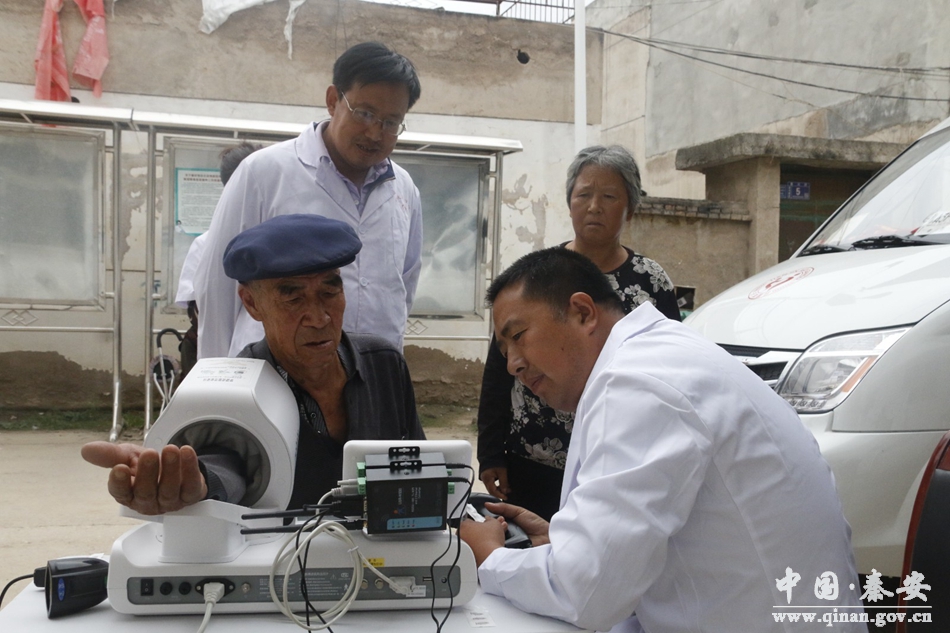 9月23日,秦安縣“互聯(lián)網(wǎng)+醫(yī)療健康”二期項目負(fù)責(zé)人與安伏鎮(zhèn)衛(wèi)生院醫(yī)護人員一起來到安伏鎮(zhèn)龔灣村,為當(dāng)?shù)啬隄M65歲的老人進(jìn)行免費健康體檢。
