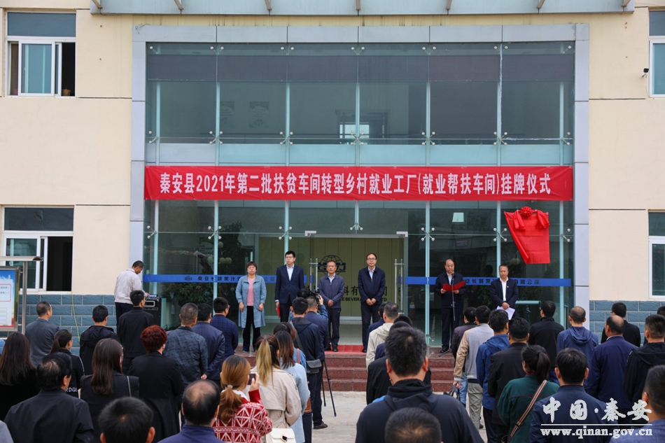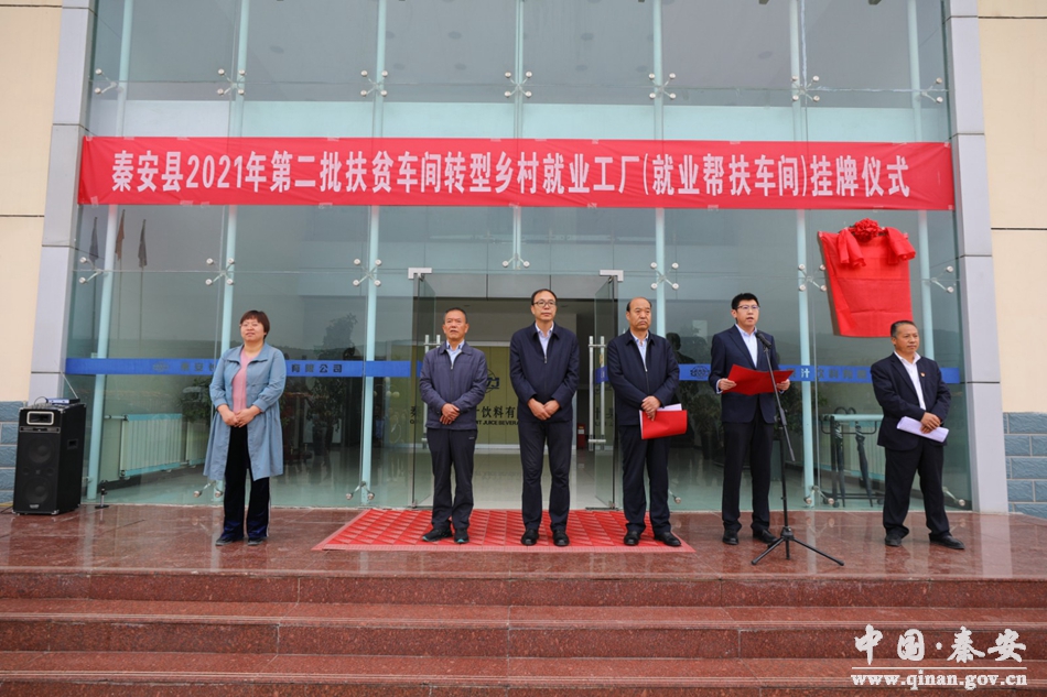 秦安縣人大常委會副主任宋捷主持掛牌儀式;縣人社局負(fù)責(zé)人宣讀了《關(guān)于進(jìn)一步推動扶貧車間健康發(fā)展的通知》和《秦安縣2021年扶貧車間轉(zhuǎn)型持續(xù)發(fā)展認(rèn)定第二批鄉(xiāng)村就業(yè)工廠(鄉(xiāng)村就業(yè)幫扶車間)的通知》;秦安長城果汁飲料有限公司負(fù)責(zé)人作了發(fā)言;縣政府副縣長楊成作了講話。