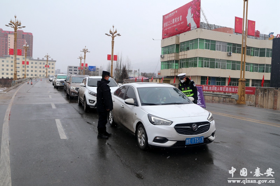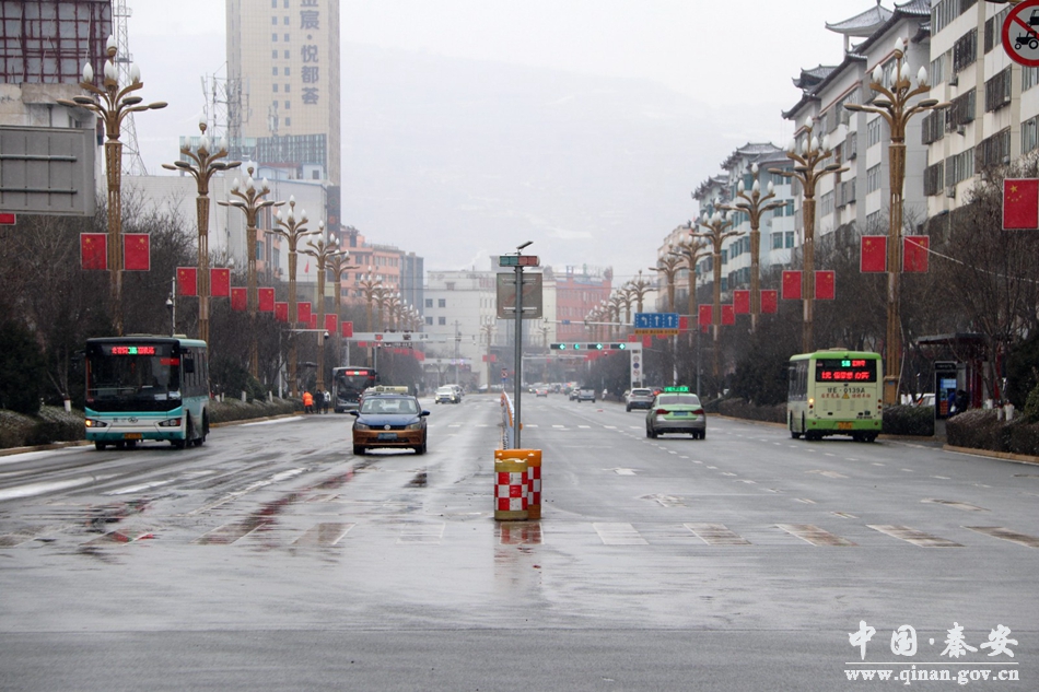 雨雪天氣導(dǎo)致路面濕滑,給道路交通管理工作帶來(lái)重重壓力。在秦安縣西川國(guó)道口,記者看到,值勤的交警也正在有條不紊地指揮交通。秦安縣公安局交警大隊(duì)城區(qū)中隊(duì)民警候雄說(shuō):“由于我縣大面積降雪,部分路段有積雪,請(qǐng)過(guò)往駕駛員同志減速慢行,注意安全!