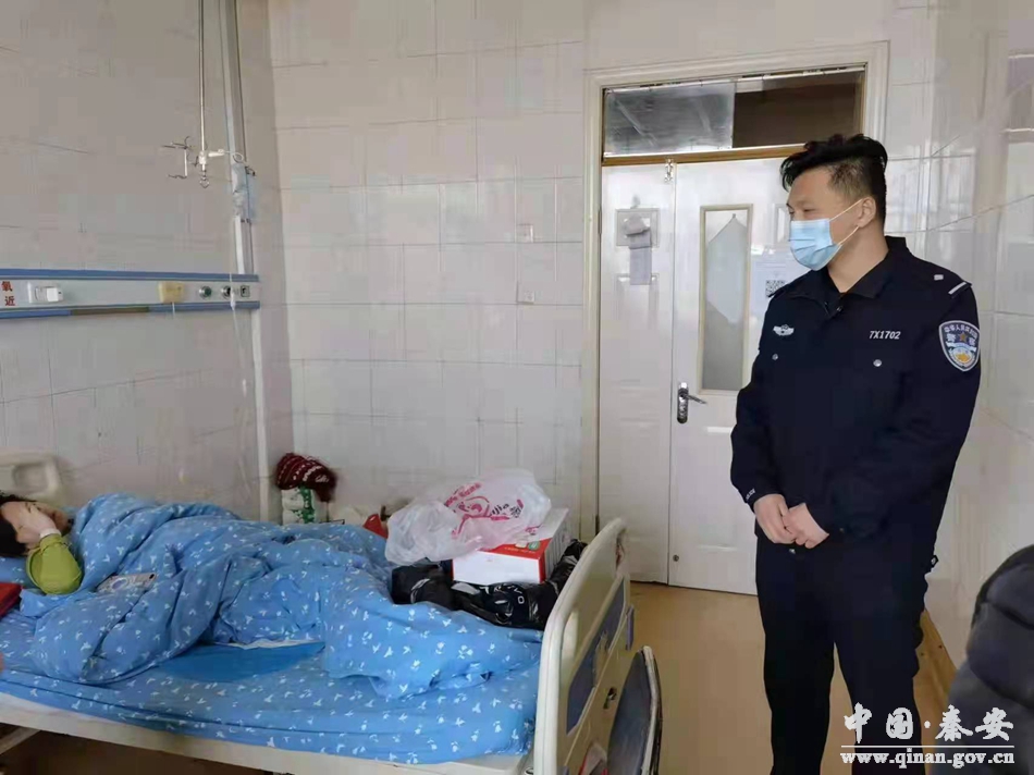 當(dāng)日上午10時30分許,秦安縣公安局蓮花派出所接到縣局指揮中心指令稱,在秦安縣蓮花鎮(zhèn)湫果村至蓮花鎮(zhèn)途中,一名即將臨盆的孕婦在前往醫(yī)院途中,因大雪封路其車輛無法行駛被困,120急救車因道路積雪不能及時趕到,急需救援。