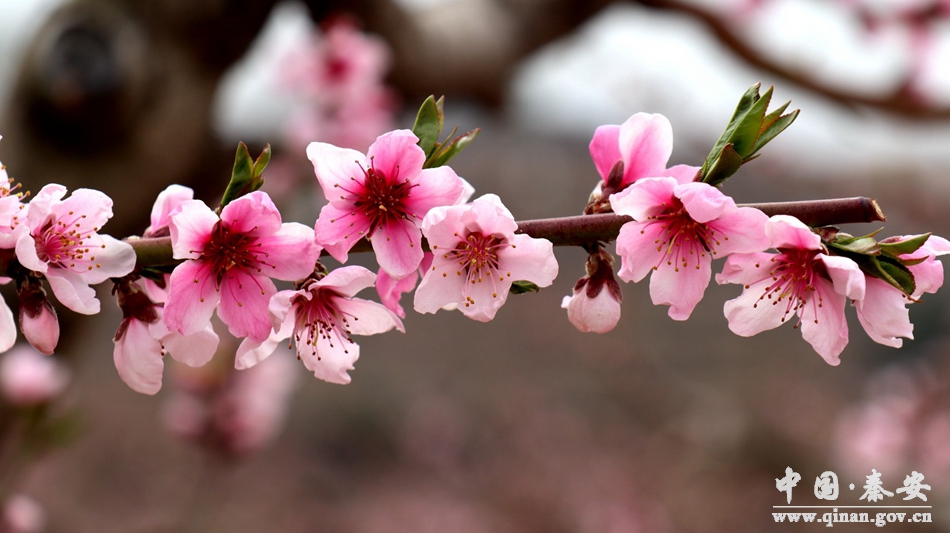 三月春風(fēng)起,桃花始盛開(kāi)。眼下正是桃花盛開(kāi)的季節(jié),位于劉坪鎮(zhèn)秦洼村的桃花陸續(xù)綻放,一派春日美景。走近一看,粉里透紅的桃花一朵緊挨一朵,形狀千姿百態(tài)。有的含苞欲放,像害羞的小姑娘;有的競(jìng)相開(kāi)放,絲絲紅色的花蕊頂著嫩黃色的小腦袋。春風(fēng)拂過(guò),淡淡的花香撲鼻而來(lái),沁人心脾。