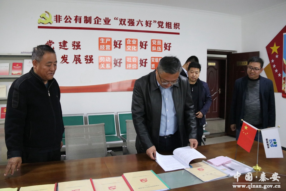 在甘肅福雨塑業(yè)有限公司黨支部,周濟(jì)通過查閱資料、聽取匯報(bào)等方式,詳細(xì)了解了黨支部黨建工作開展情況。