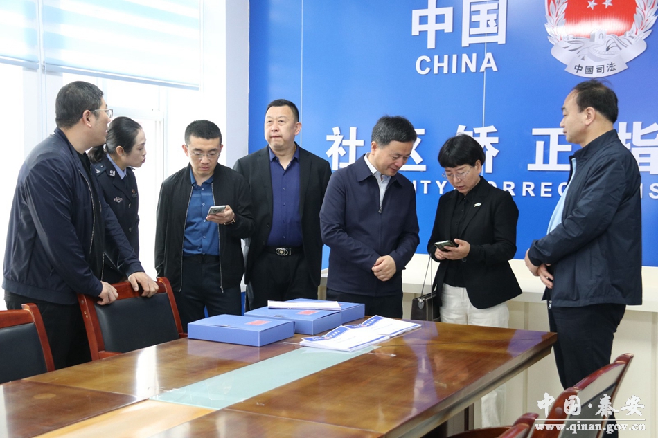 5月24日,省司法廳社區(qū)矯正管理局局長侯小平帶領(lǐng)調(diào)研組來秦安縣調(diào)研指導(dǎo)社區(qū)矯正主動(dòng)創(chuàng)穩(wěn)暨監(jiān)管突出問題、智慧矯正中心建設(shè)工作,市司法局副局長霍珍珍,縣政府副縣長、公安局局長薛天勝一同調(diào)研。