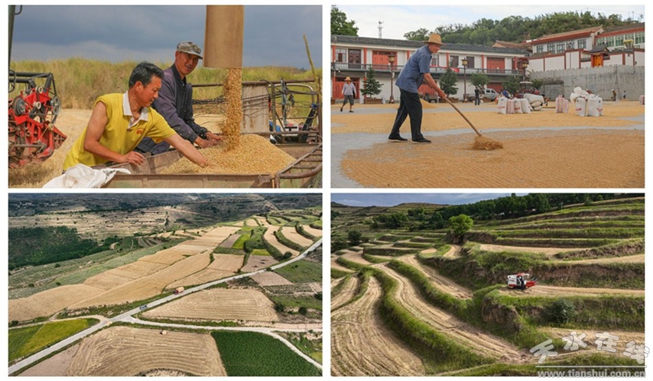 隴城鎮(zhèn)人大主席柴小鋒告訴記者:“在鳳尾、略陽、上轅、純?nèi)实?1村集中連片種植冬小麥4100畝,其中面積最大的‘三道深 ’流域有1500畝,全鎮(zhèn)共計種植冬小麥24900畝。目前,我鎮(zhèn)80%的小麥已完成收割、脫粒、晾曬等工作,預計兩天內(nèi)全部收割完成。根據(jù)初步調(diào)查,平均畝產(chǎn)小麥500斤,全鎮(zhèn)預計產(chǎn)量達6200 噸!