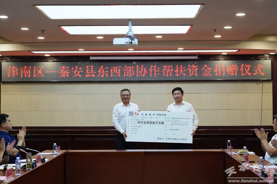 在津南區(qū)—秦安縣東西部協(xié)作聯(lián)席會議上,縣政府副縣長楊成介紹了秦安縣鞏固拓展脫貧攻堅成果同鄉(xiāng)村振興有效銜接和東西部協(xié)作工作情況;天津市津南區(qū)向秦安縣援助幫扶資金5590萬元;津南區(qū)咸水沽鎮(zhèn)、雙橋河鎮(zhèn)、八里臺鎮(zhèn)分別向秦安縣興國鎮(zhèn)、劉坪鎮(zhèn)、隴城鎮(zhèn)援助幫扶資金各50萬元。