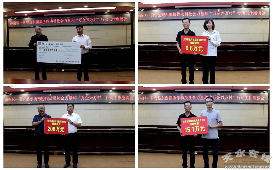 在津南區(qū)—秦安縣東西部協(xié)作動員社會力量和“萬企興萬村”行動工作座談會上,秦安縣委副書記姚建國向津南區(qū)各界長期以來對秦安的傾情幫扶表示了感謝;縣委常委、副縣長王育盛介紹了2022年動員社會力量和“萬企興萬村”行動資金使用、項目建設情況以及2023年工作開展情況;隨后舉行了幫扶資金和幫扶物資捐贈儀式。