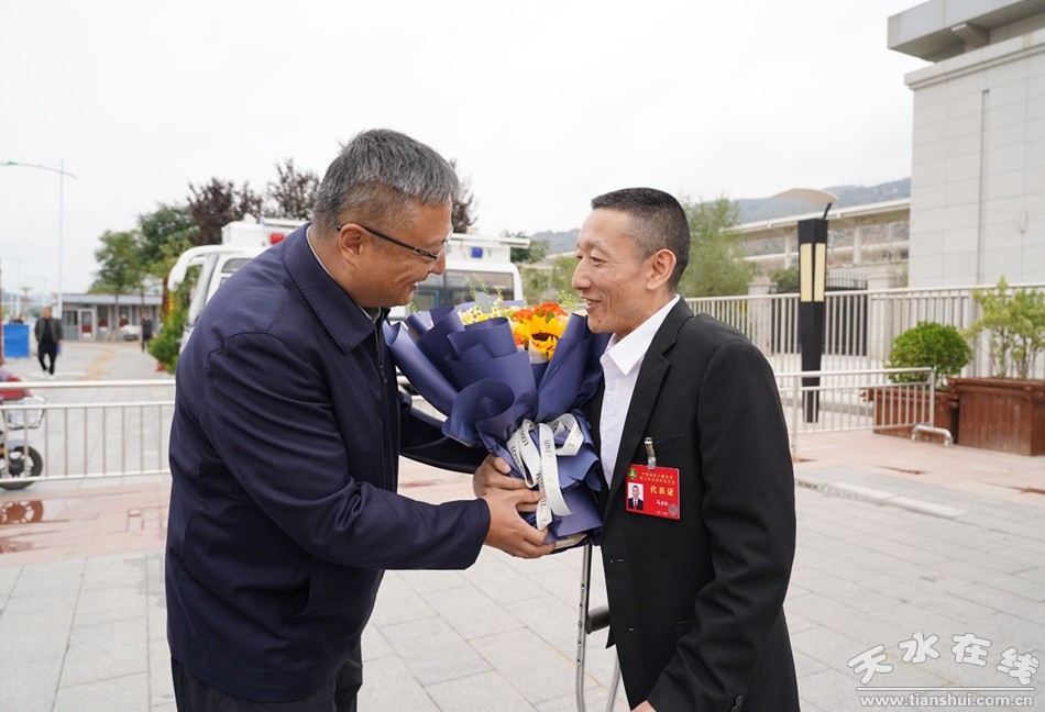 9月21日,參加中國殘疾人聯(lián)合會第八次全國代表大會代表馬啟紅履職歸來。秦安縣委書記周濟,縣委常委、組織部部長夏子文盛情迎接,并與他親切交談。