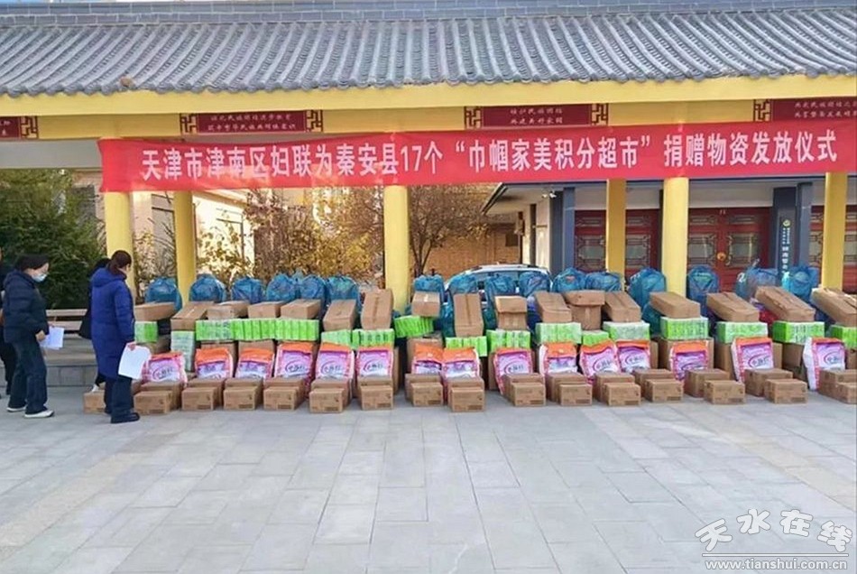 近日,天津市津南區(qū)婦聯(lián)為秦安縣17個(gè)“巾幗家美積分超市”捐贈(zèng)物資發(fā)放儀式在興國(guó)鎮(zhèn)安家園子廣場(chǎng)舉行。秦安縣婦聯(lián)領(lǐng)導(dǎo)干部、17鎮(zhèn)婦聯(lián)主席和17個(gè)“積分超市”相關(guān)村的婦聯(lián)主席參加儀式。