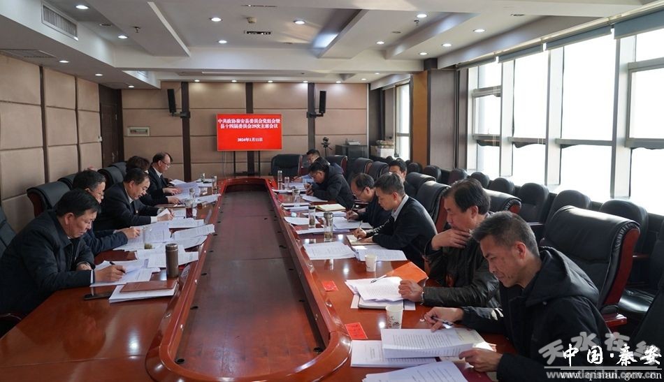 會(huì)議集體學(xué)習(xí)了習(xí)近平總書記二〇二四年新年賀詞,習(xí)近平總書記在紀(jì)念毛澤東同志誕辰130周年座談會(huì)上的重要講話精神,習(xí)近平總書記在中央農(nóng)村工作會(huì)議上的重要講話精神,習(xí)近平總書記在全國(guó)政協(xié)新年茶話會(huì)上的重要講話精神,中國(guó)共產(chǎn)黨甘肅省第十四屆委員會(huì)第四次全體會(huì)議決議,省委經(jīng)濟(jì)工作會(huì)議精神、省委農(nóng)村工作會(huì)議精神,審議通過了《2023年縣政協(xié)黨組工作情況匯報(bào)(審議稿)》《中共秦安縣政協(xié)黨組學(xué)習(xí)貫徹習(xí)近平新時(shí)代中國(guó)特色社會(huì)主義思想主題教育專題民主生活會(huì)對(duì)照檢查材料(審議稿)》,研究了縣政協(xié)領(lǐng)導(dǎo)班子分工事宜。