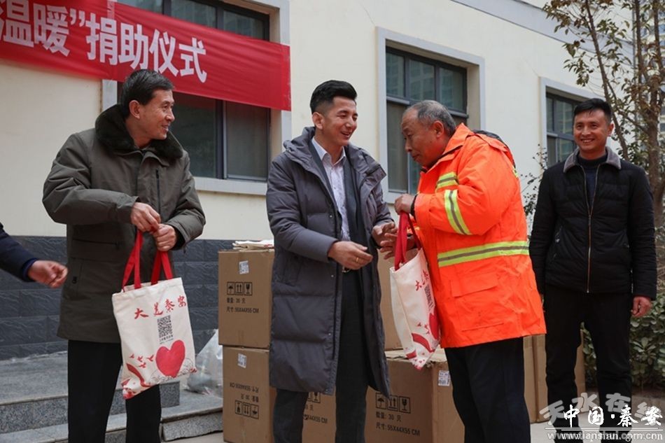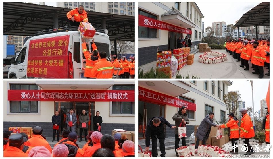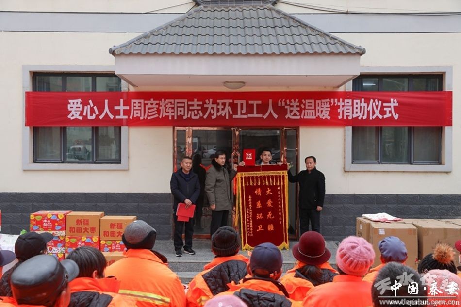 入冬以來,氣溫持續(xù)走低,但環(huán)衛(wèi)工人仍堅守在自己的工作崗位,為感謝環(huán)衛(wèi)工人的辛苦付出,1月18日,秦安縣愛心人士周彥輝為全縣一線環(huán)衛(wèi)工人捐贈了價值6萬余元的“暖冬禮包”,向辛勤的“城市美容師”致謝、致敬。