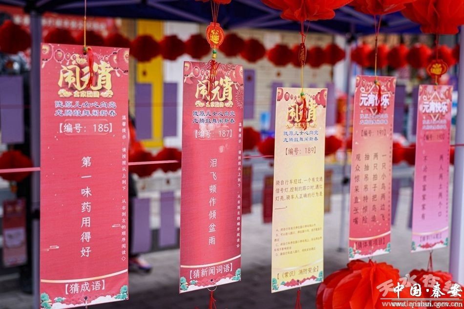 正月十五鬧花燈,多姿多彩耀民生。“猜燈謎”是元宵佳節(jié)的重要習(xí)俗之一,歷史悠久,內(nèi)涵豐富。在秦安縣2024年鬧新春趣味燈謎年俗文化活動現(xiàn)場,掛滿了五彩繽紛的燈謎紙條,謎題內(nèi)容豐富多樣,涵蓋了文化、歷史、生活等多個領(lǐng)域,知識面廣、趣味性強,大家你一言、我一語,興致勃勃,各顯其才,看燈謎、猜謎底、領(lǐng)獎品,現(xiàn)場洋溢著歡樂、祥和、喜慶的節(jié)日氣氛。