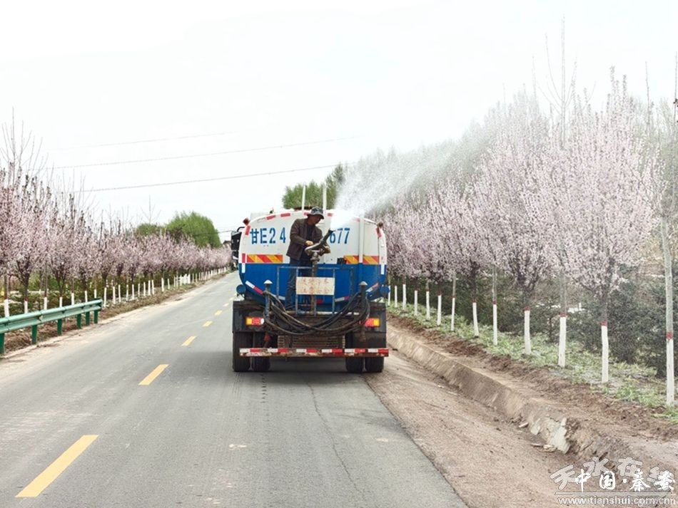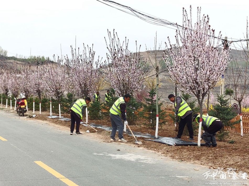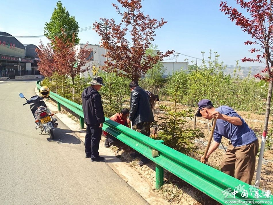 春日里,溫暖的陽光從綠植樹葉的縫隙中穿過,灑滿一地斑駁的光影。走在秦安縣千戶鎮(zhèn)涇甘公路(S304省道)沿線以及所有通村道路上,錯落有致的綠植郁郁蔥蔥,綠化帶內(nèi)一棵棵紅葉李、一株株月季、鳶尾等高低相間,美不勝收。