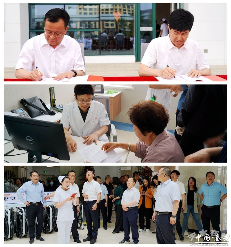 儀式上,介紹了縣醫(yī)院項目情況;天津市津南醫(yī)院與秦安縣人民醫(yī)院簽訂“組團(tuán)式”幫扶協(xié)議;并為名醫(yī)工作室“岳中瑾名醫(yī)工作室”“鄧強(qiáng)名醫(yī)工作室”“王金羊名醫(yī)工作室”“牛軍強(qiáng)中醫(yī)工作室”揭牌。