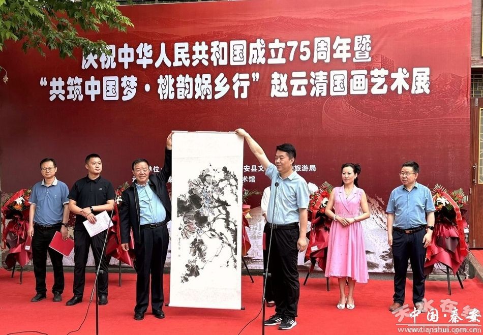 為弘揚中華優(yōu)秀傳統(tǒng)文化,進一步豐富全縣人民的精神文化生活,啟發(fā)和激勵廣大文藝工作者以畫寄情,自覺踐行愛國、為民、崇德、尚義的文藝界核心價值觀,共同推動秦安文化事業(yè)繁榮發(fā)展。6月18日,慶祝中華人民共和國成立75周年暨“共筑中國夢·桃韻媧鄉(xiāng)行”趙云清國畫藝術展在秦安縣文化館開展,縣政協(xié)主席楊喜春,縣委常委、宣傳部部長馬昊瑩,縣政府副縣長鄭博及相關部門干部職工代表和書畫愛好者共計80余人參加活動。