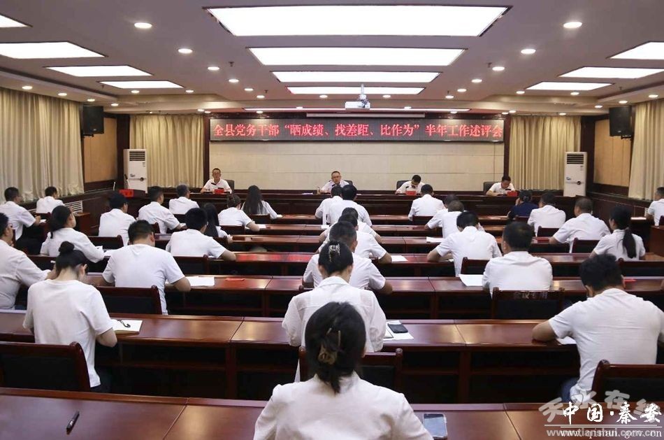 7月5日,秦安縣委組織部組織開(kāi)展全縣黨務(wù)干部“曬成績(jī)、找差距、比作為”半年工作述評(píng)活動(dòng),充分展示各領(lǐng)域黨建工作亮點(diǎn),查擺問(wèn)題差距,共謀努力方向,在全縣范圍內(nèi)形成“比、學(xué)、趕、超”的良好氛圍。各鎮(zhèn)黨建辦主任、縣直各黨(工)委、各行業(yè)黨委副書(shū)記,組織部全體干部參加活動(dòng),縣委常委、組織部長(zhǎng)夏子文出席活動(dòng)并講話。