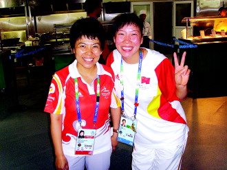 劉麗娟(右)與鄧亞萍在奧運(yùn)村。