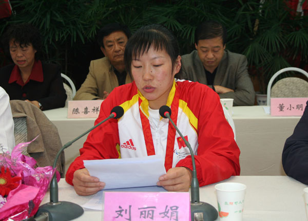 現(xiàn)在,劉麗娟有三個(gè)夢(mèng)想,一個(gè)是好好的調(diào)養(yǎng)自己的身體,她笑著說:“太累了,真得太累了”;第二個(gè)就是好好地陪陪父親,竭盡全力給他把病治好;第三個(gè)就是繼續(xù)參加2012年的倫敦殘奧會(huì)。